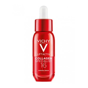 Liftactiv Collagen Specialist 16 Bonding Serum de Vichy potencia el colágeno de la piel y ayuda a corregir 16 signos del envejecimiento, como: firmeza, arrugas, líneas finas, flexibilidad, contorno, suavidad, textura, tonicidad, densidad, resistencia, reparación, luminosidad, piel tersa, elasticidad, hidratación, uniformidad.