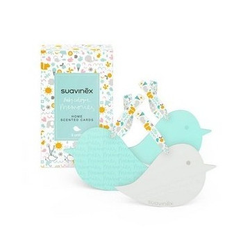 Suavinex Memories Ambientador Suavinex Tarjetas Perfumadas 3 Unidades son tarjetas decorativas con un hermoso diseño y con dulce toque floral y cítrico desprendiendo un suave y agradable aroma en los espacios de almacenaje y en la ropa, incorpora un lazo para colgar de la barra del armario o la percha y tiene una larga duración de 2 meses aproximadamente de fragancia.