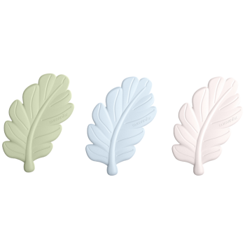 Mordedor de silicona con forma de hoja silvestre. Esterilizable en frío.